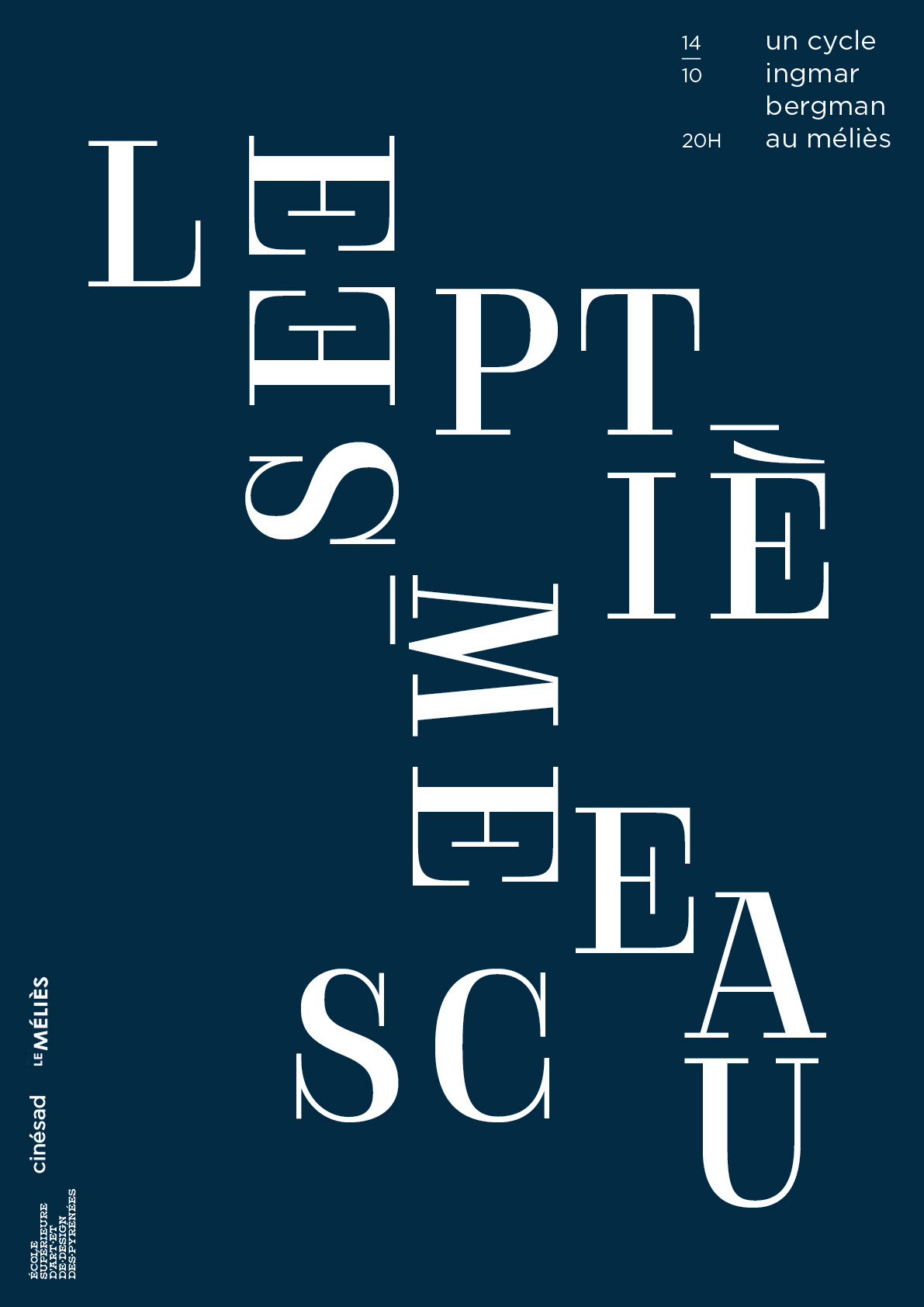 Series of typographic posters in collaboration with Le Méliès cinema in Pau (France). Letters in motion, the graphic idea underlines here the psychological and complex character of the films of Ingmar Bergman.